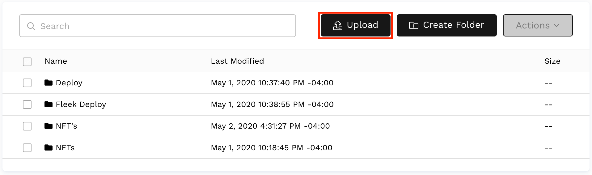 Upload, browse, and manage all your files through the app interface. All files uploaded are published to IPFS and published to DNS, with a CDN and File Compression. You can view and reference the files through the Fleek Storage URL, and can view directly on the IPFS gateway.